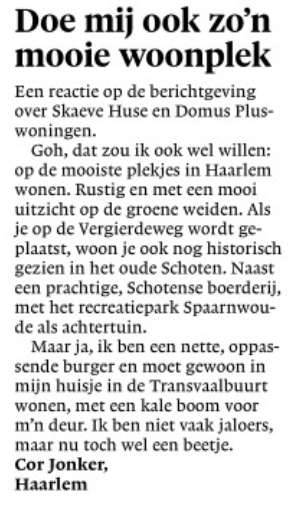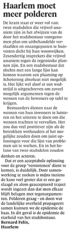 Eén grote leugen en kiezersbedrogHaarlem moet meer polderen